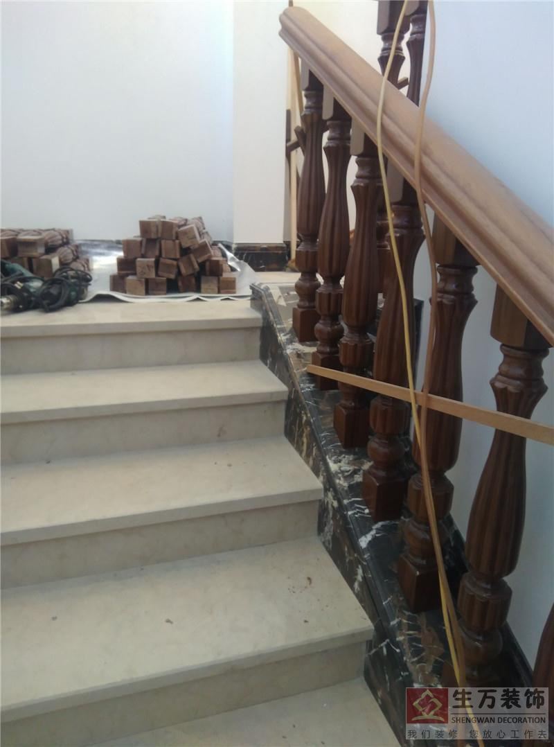 广州新塘装饰公司设计本案例新塘别墅设计楼梯大理石台阶工艺。