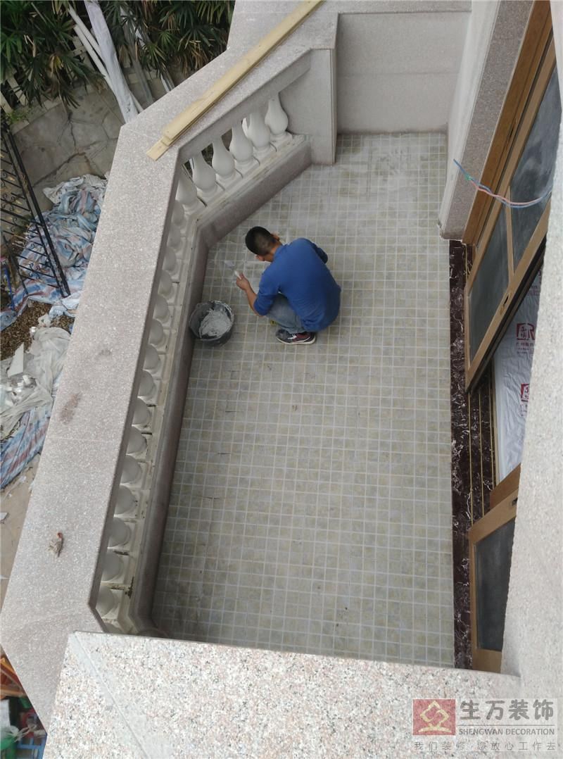 三楼露台干挂大理石安装完成。