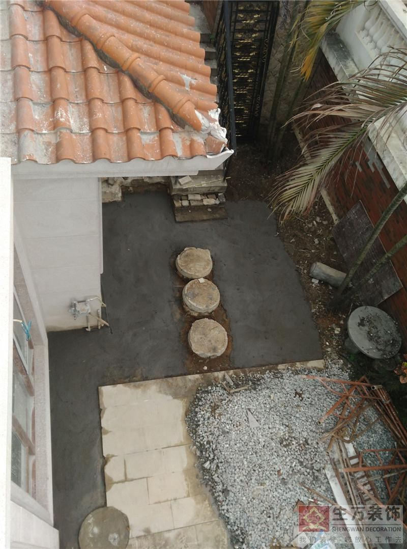 首层花园地面水泥硬化找平处理。