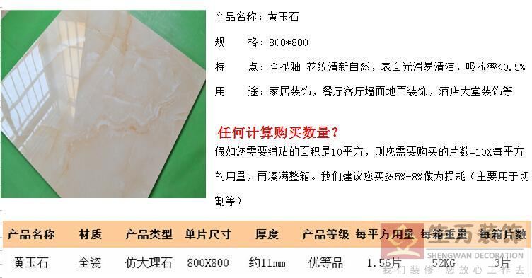 项目介绍:仿大理石瓷砖800x800琥珀玉 全抛釉 客厅地砖,本店所售产品均为原厂优等品,假一赔十,请放心选购,上面所标注的价格都是一片的价格,上面的运费都不是实际运费,具体运费请咨询客服