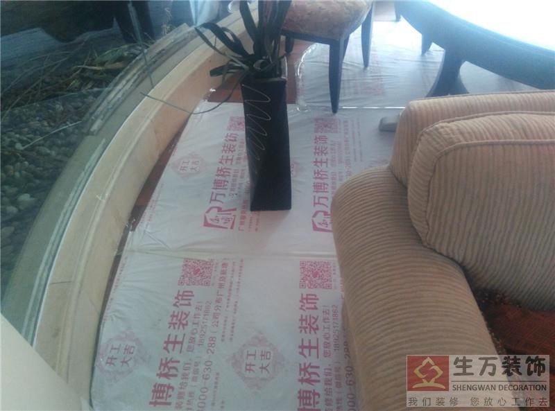 客厅地面采用专用广州市装修公司专用地膜保护工作。