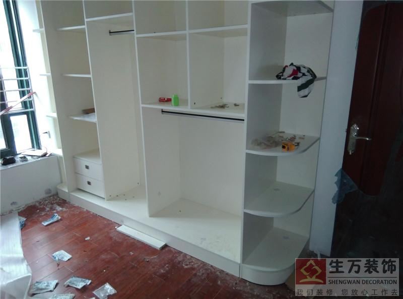广州天河区五山路半山翠庭楼盘装修,硬装修完工,软装饰进行中,安装衣柜,安装床、书柜、小孩房蹋蹋米床、书柜、书台,整个广州装修设计到完成,硬装修为两个月的时间,软装修的时间为两个月,由于广州装修业主只有周六日才有时间跟工地,平时都没有时间,所以硬装修完工后业主在软装饰的时间较长,整个广州装修施工接过完工了。看看业主定的多层实木夹板衣柜吧,高端环材、无异味,设计非常实用。